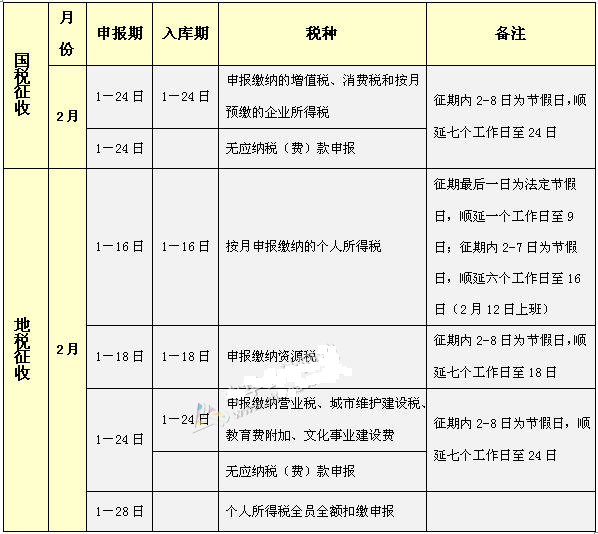 注:以上為北京市常用征期日歷,具體納稅申報時間以當地主管稅務機關規(guī)定為準,此表僅供參考。