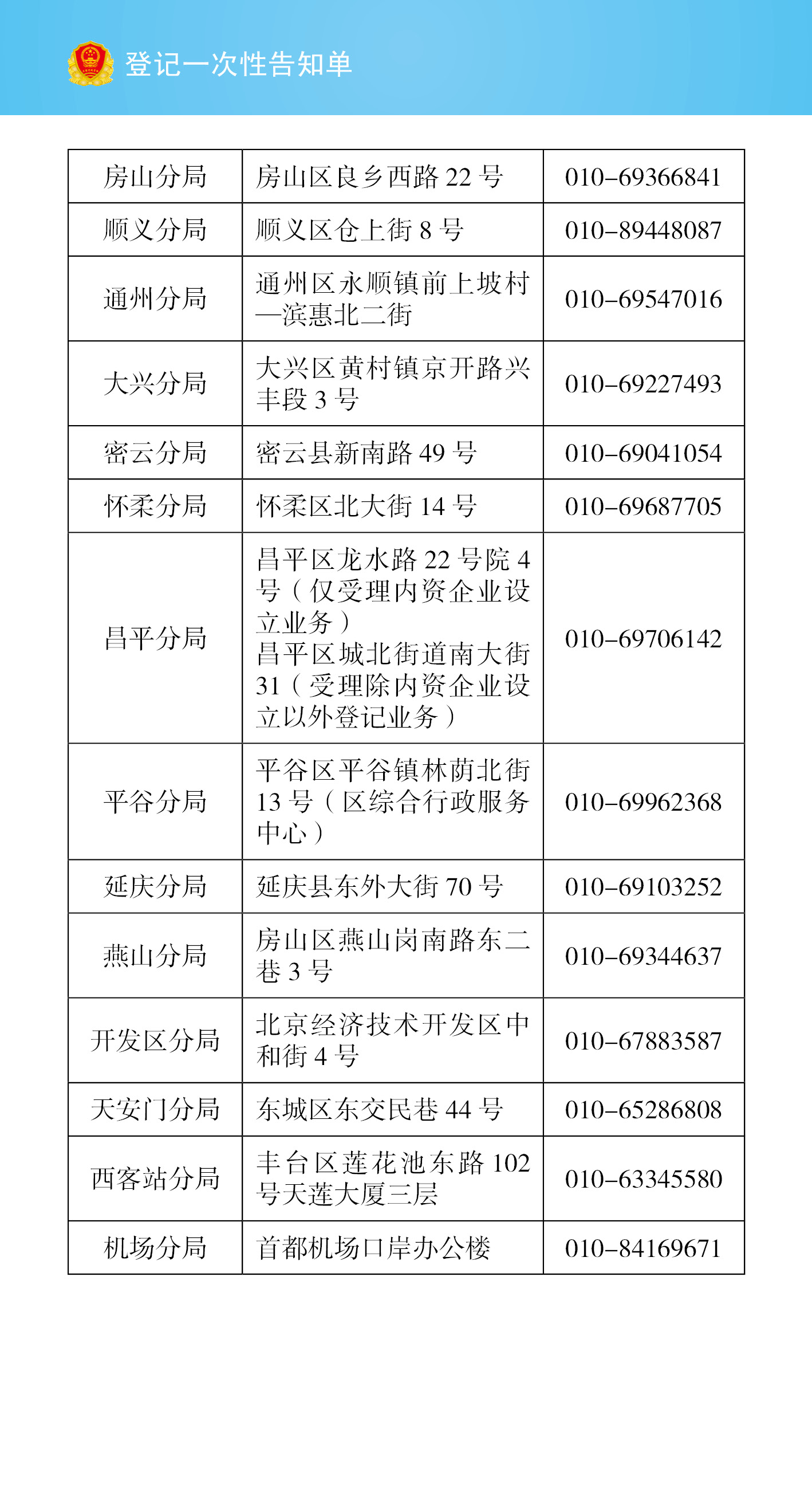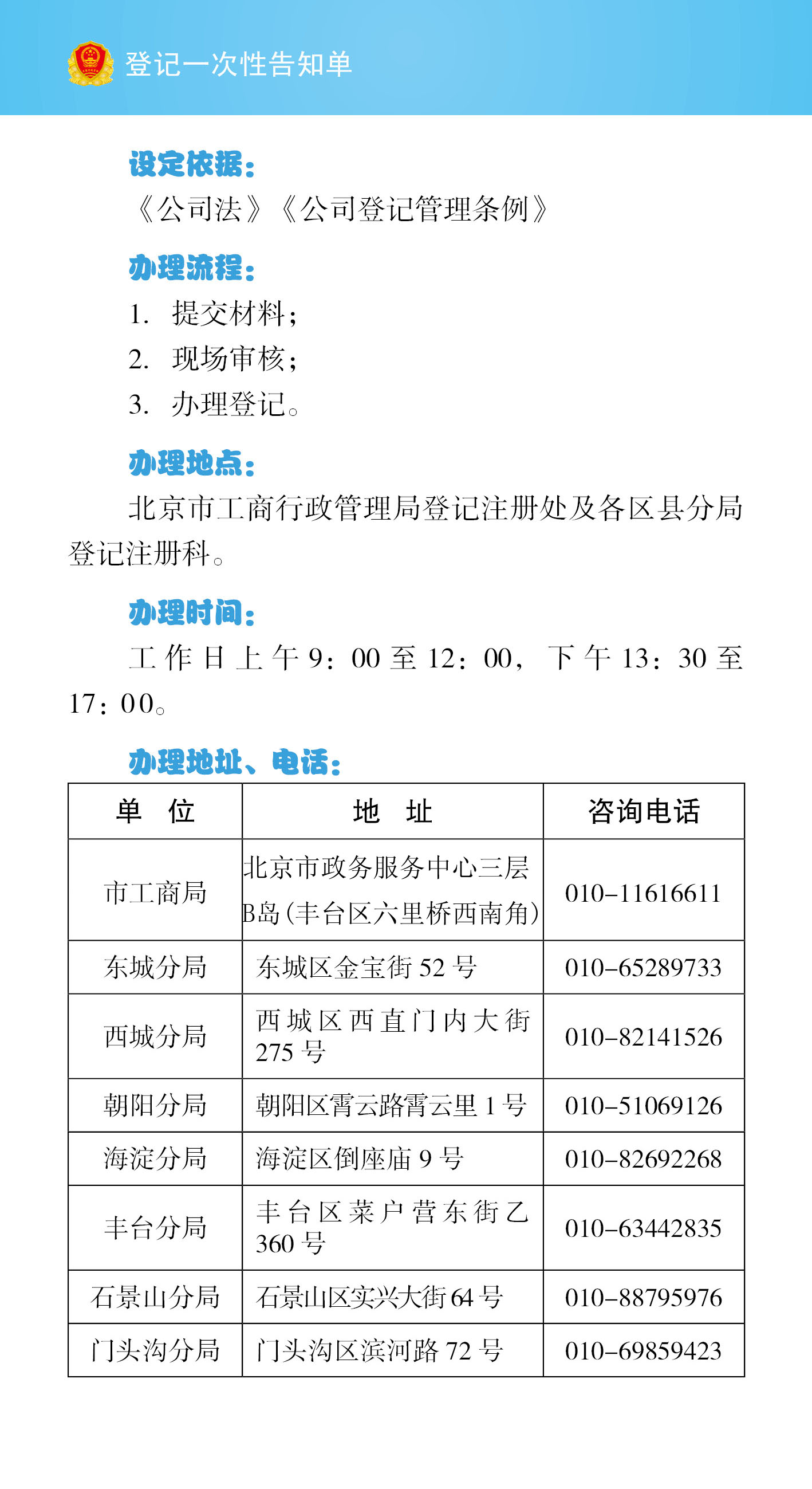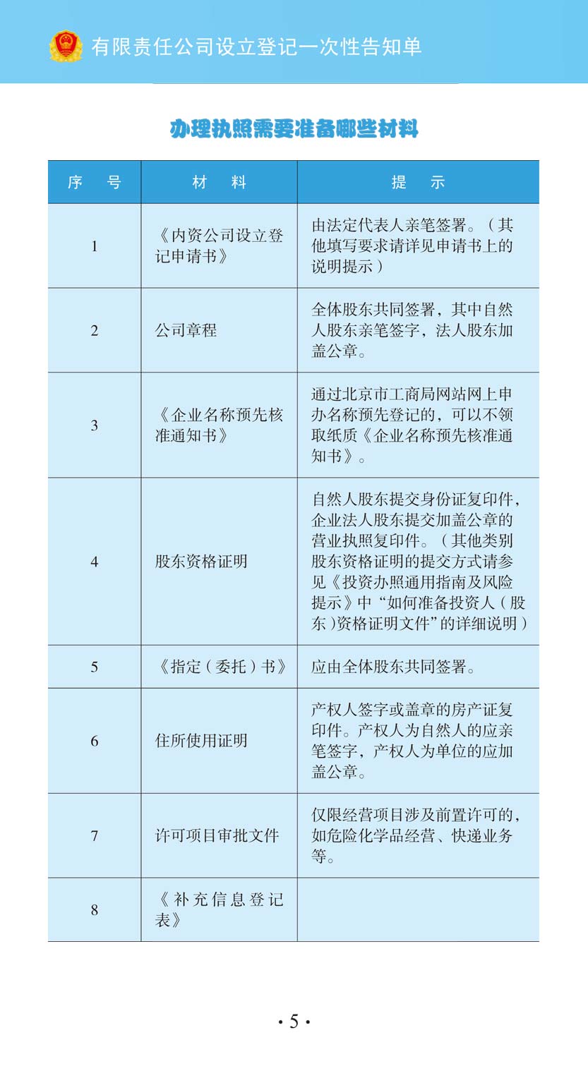 有限責(zé)任公司設(shè)立登記一次性告知單